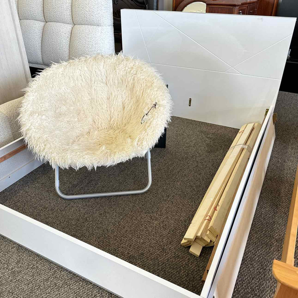 (NEW)Naples White Lacquer Modern Platform Bed.