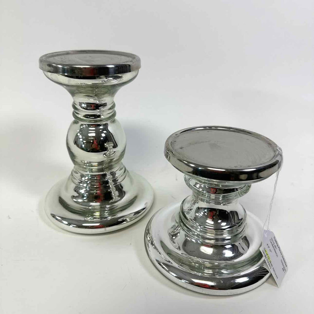 Set of (2) silver mirrored candle holders