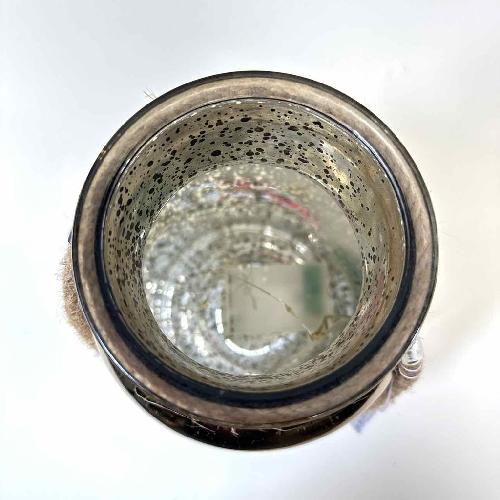 Silver speckled mercury glass jar w/ rope handle & battery operated lights