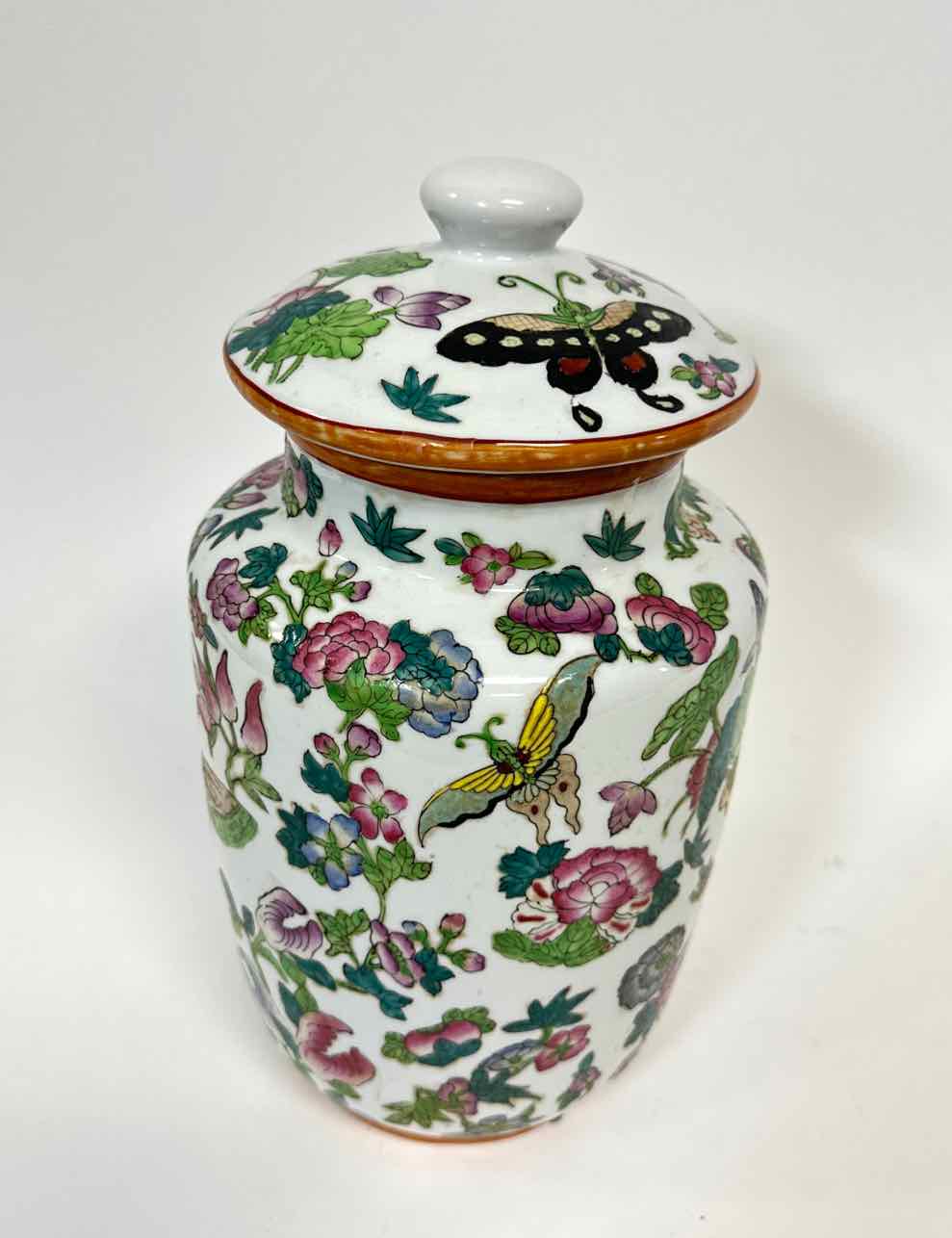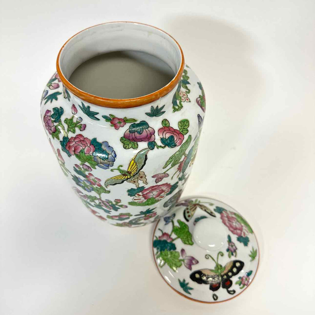 Hand painted Asian Ginger Jar /w butterfly & flower motif.