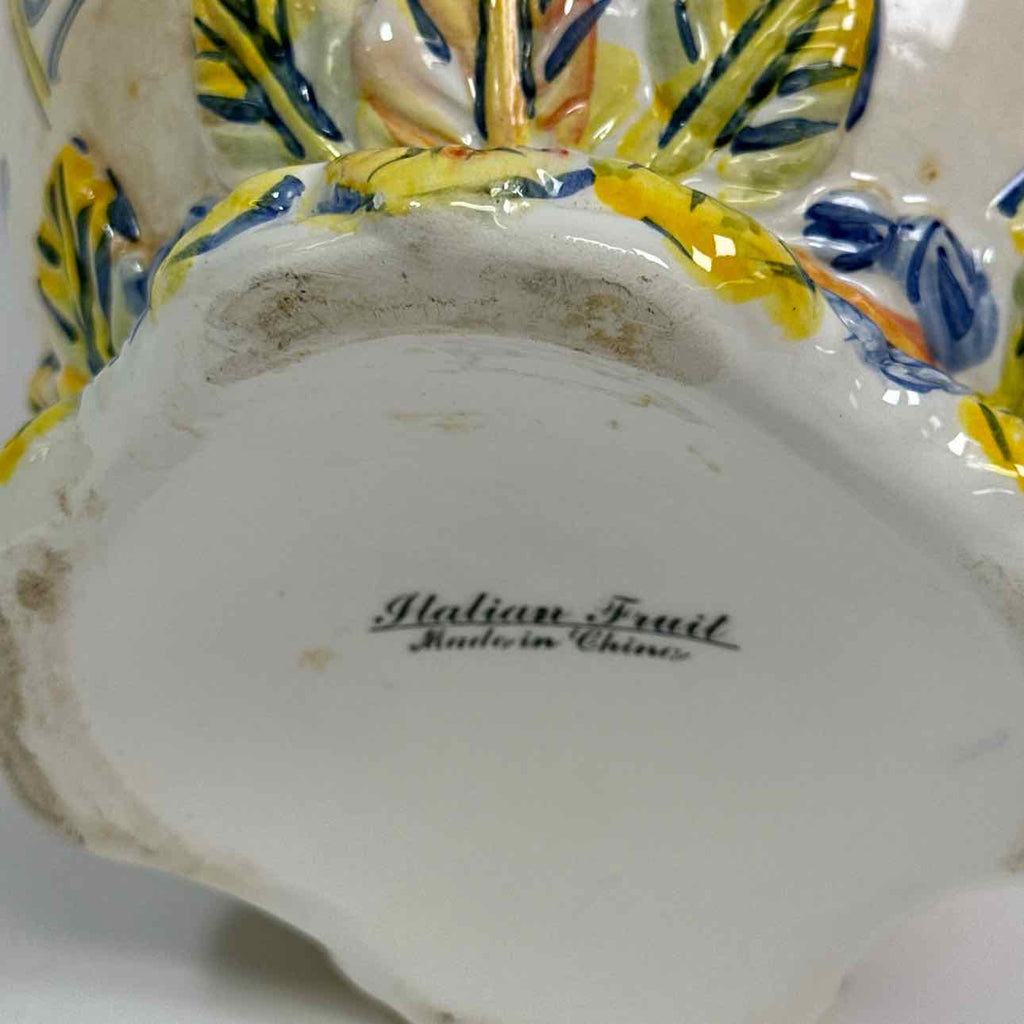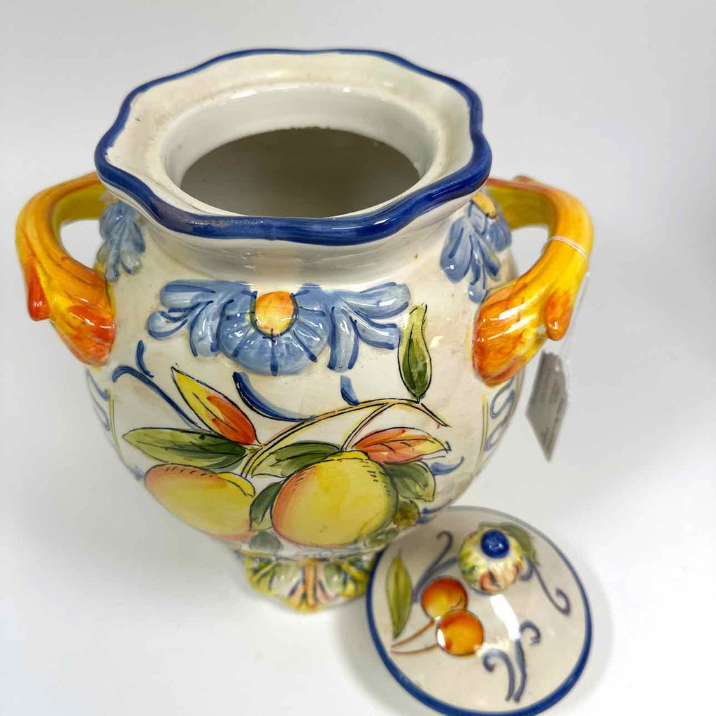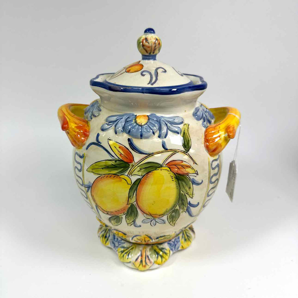 Hand painted Italian style biscotti jar w/ lemon design & yellow handles
