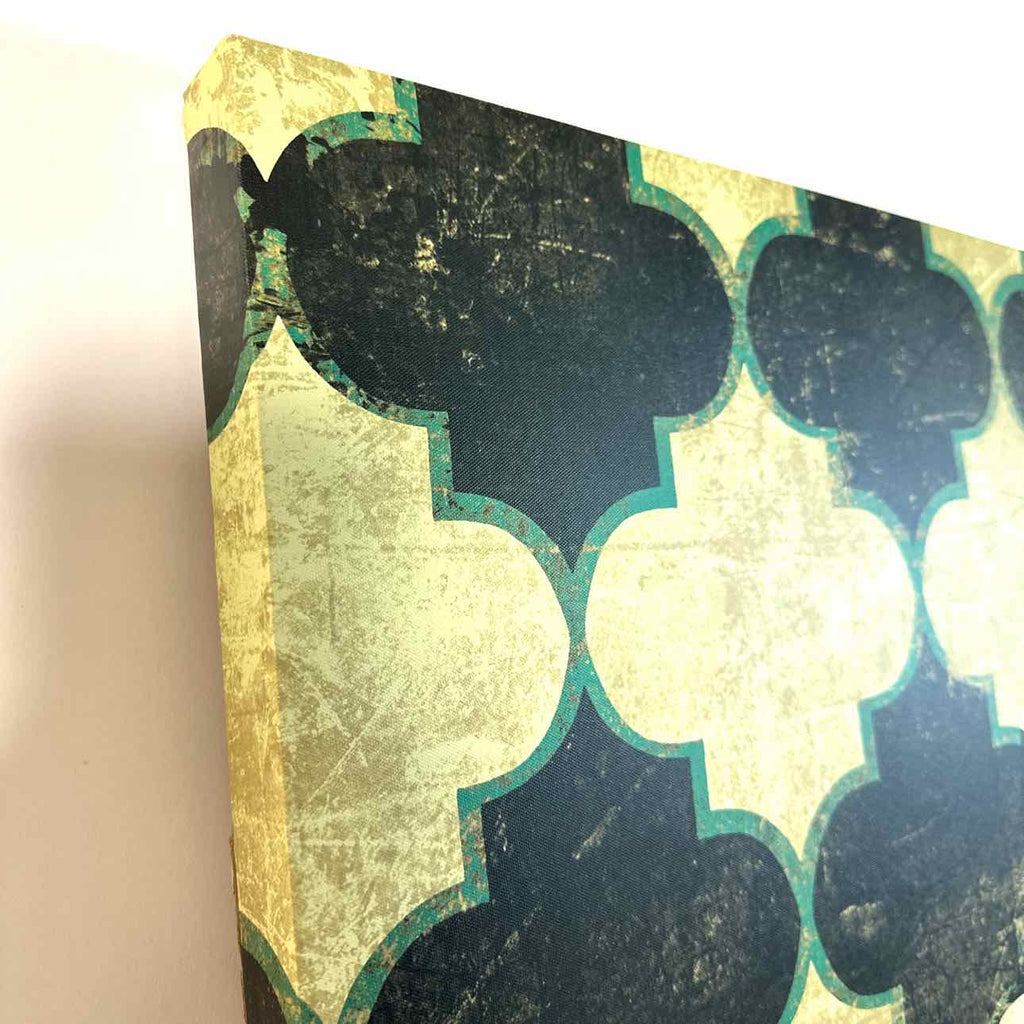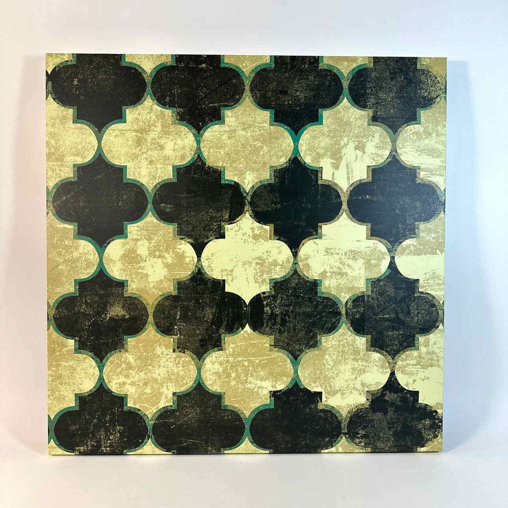 Black, yellow & green geometric print on canvas