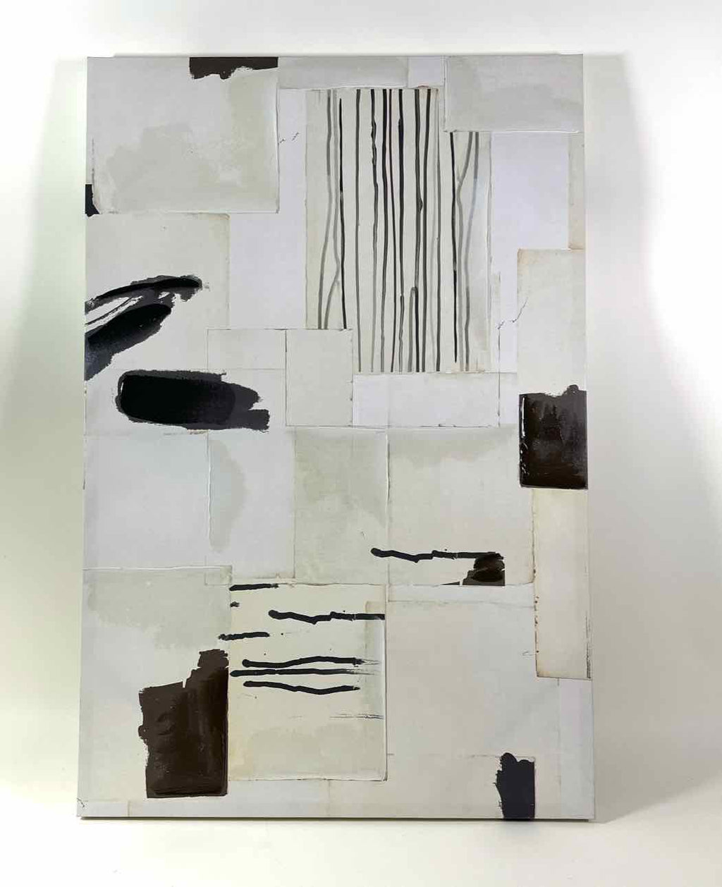 Modern abstract giclee creating textured blocks of color using tones of grey & white