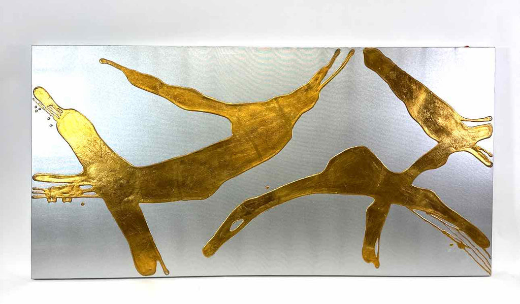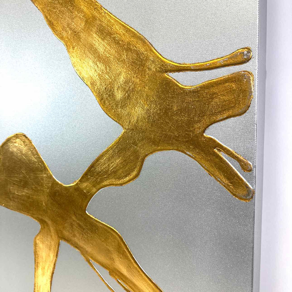 Free form raised gold design on silver grey canvas