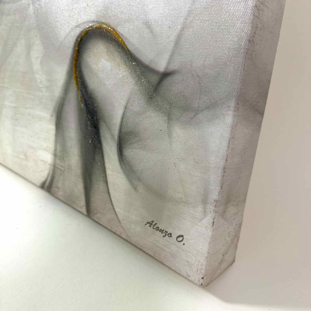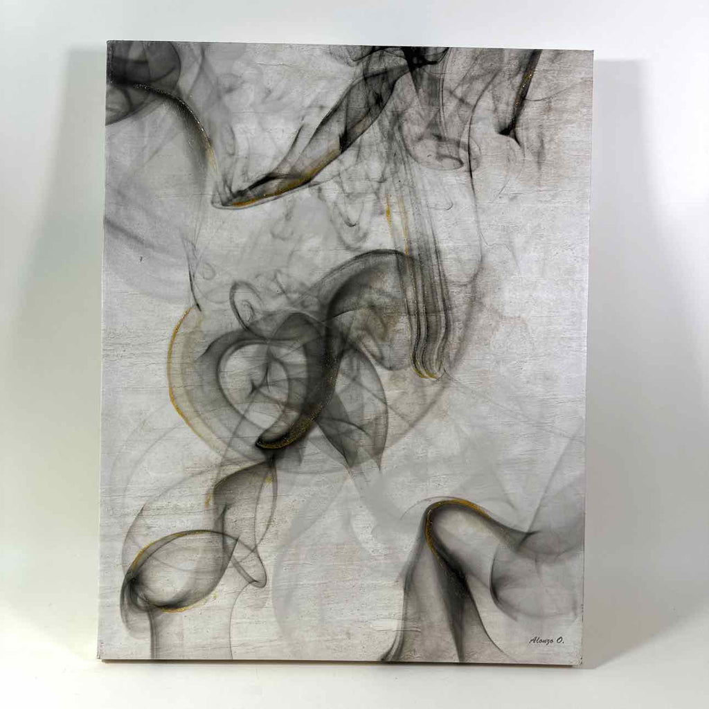 Abstract on canvas using grey tones w/ gold gel accent.