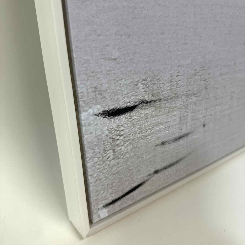 Minimal art on canvas in black, grey & white. Floats in white frame