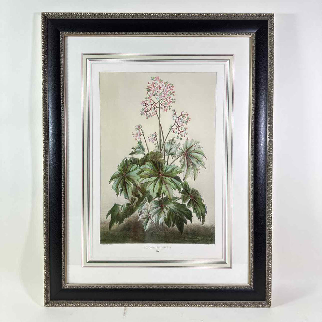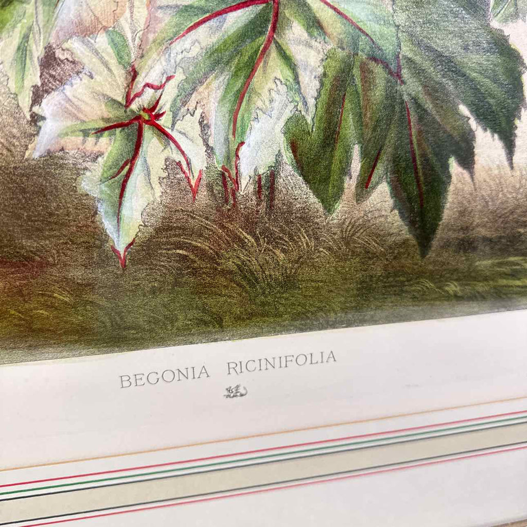 Study of Begonia Ricinifolia w/ big leaves. Has ivory mat, brown leather like frame w/ soft gold edge