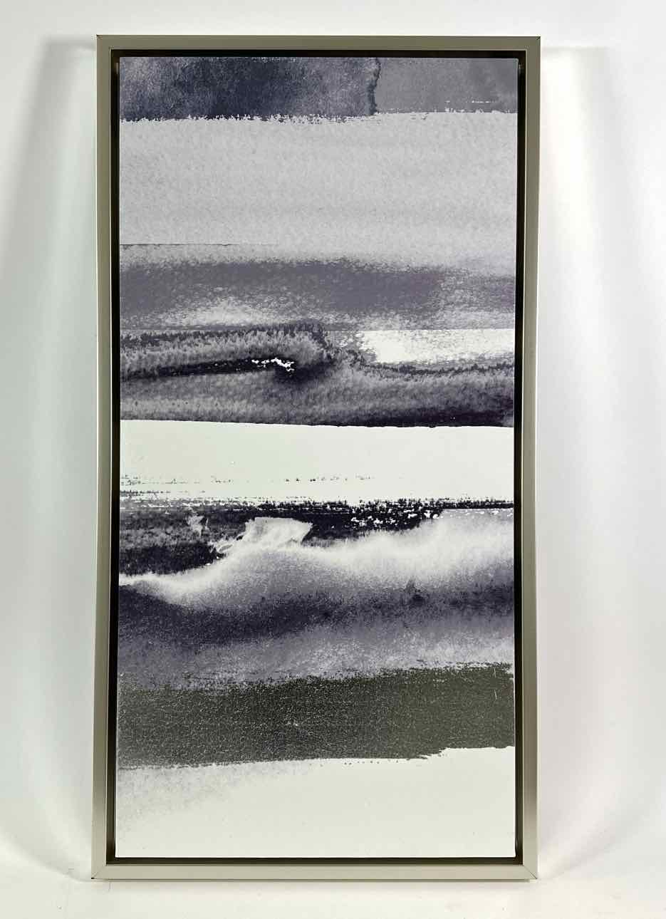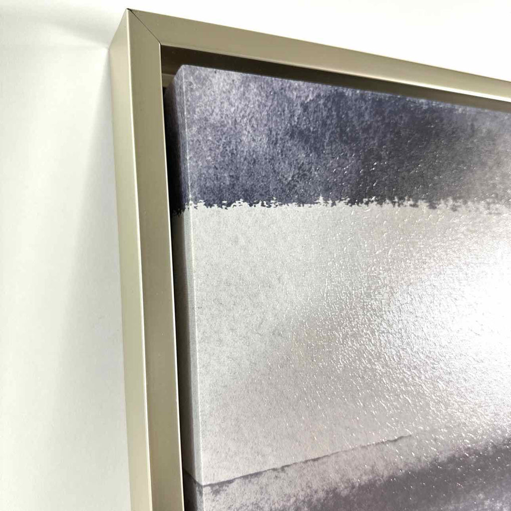 Black & white abstract using horizontal strokes. Floats within a silver frame