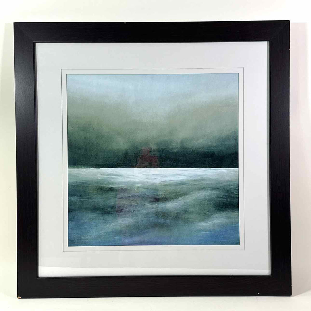 Abstract ocean scene using blues & greens. Has ivory mat & dark brown frame