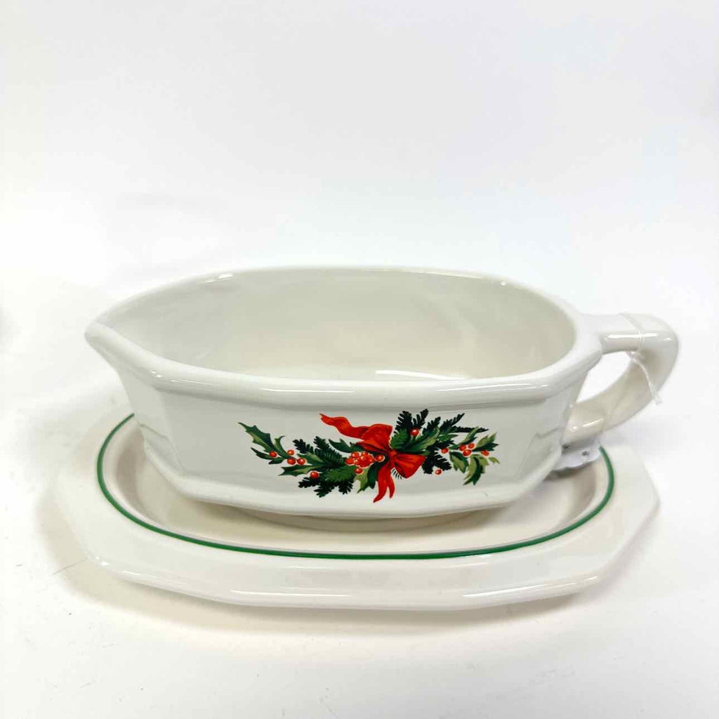 (2) piece Gravy boat w/ underplate in the "Christmas Heritage" pattern
