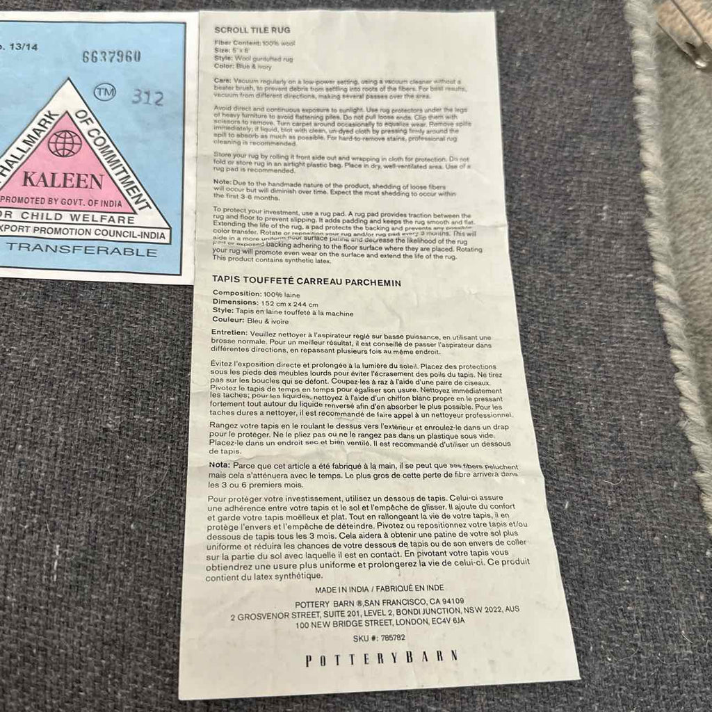 "Scroll Tile" Spa blue w/large white pattern; 100% Wool