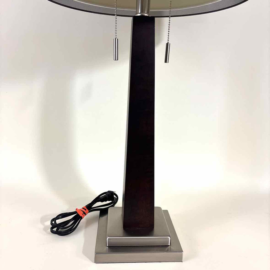 Wood column body, w/chrome square base, (2) pull chain sockets & double shade