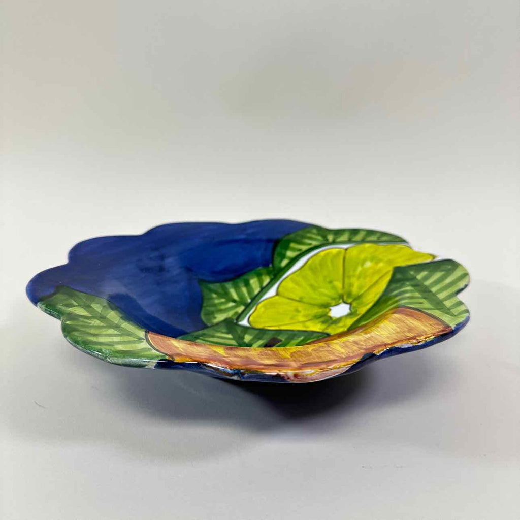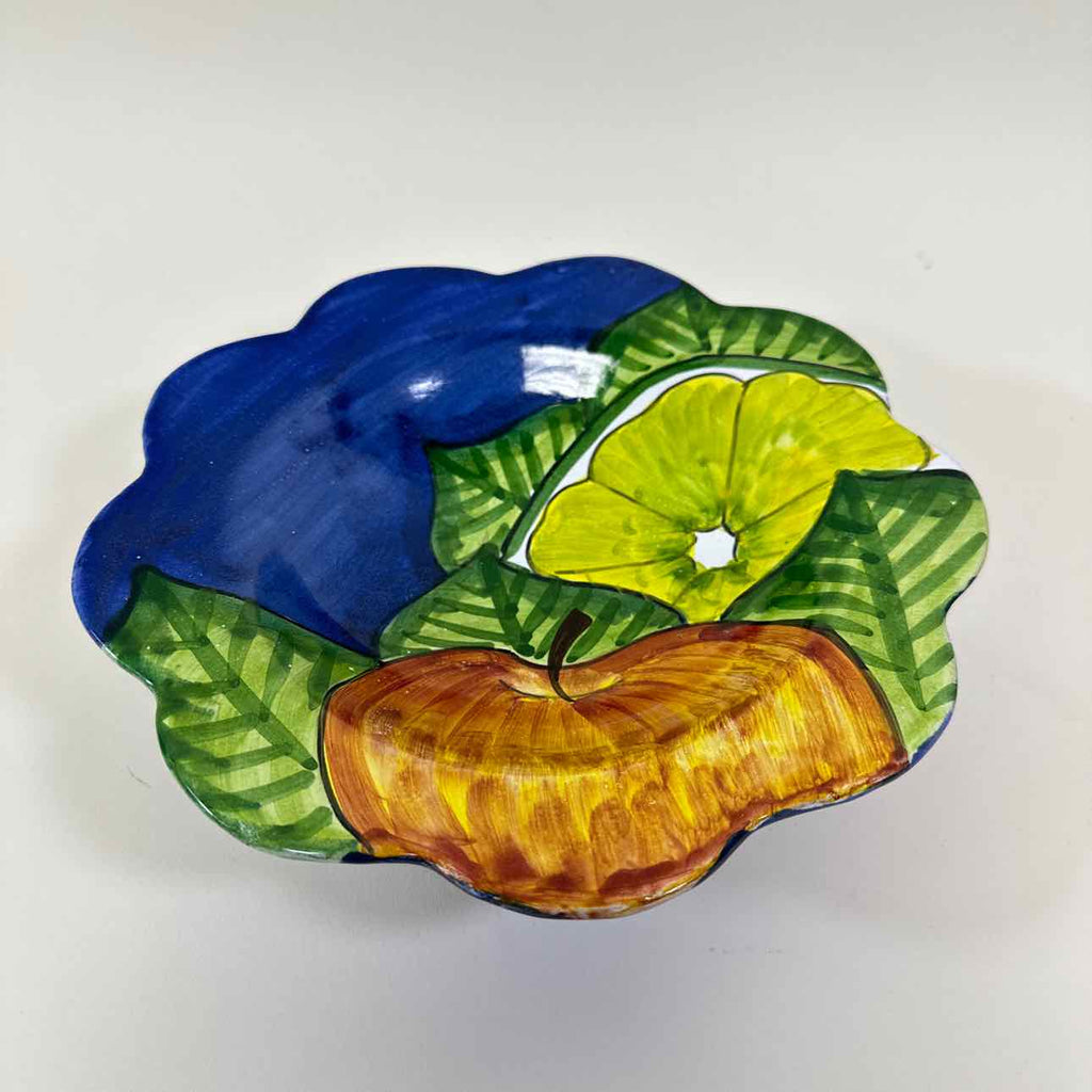 Hand painted serving bowl w/ scalloped edge & fruit pattern