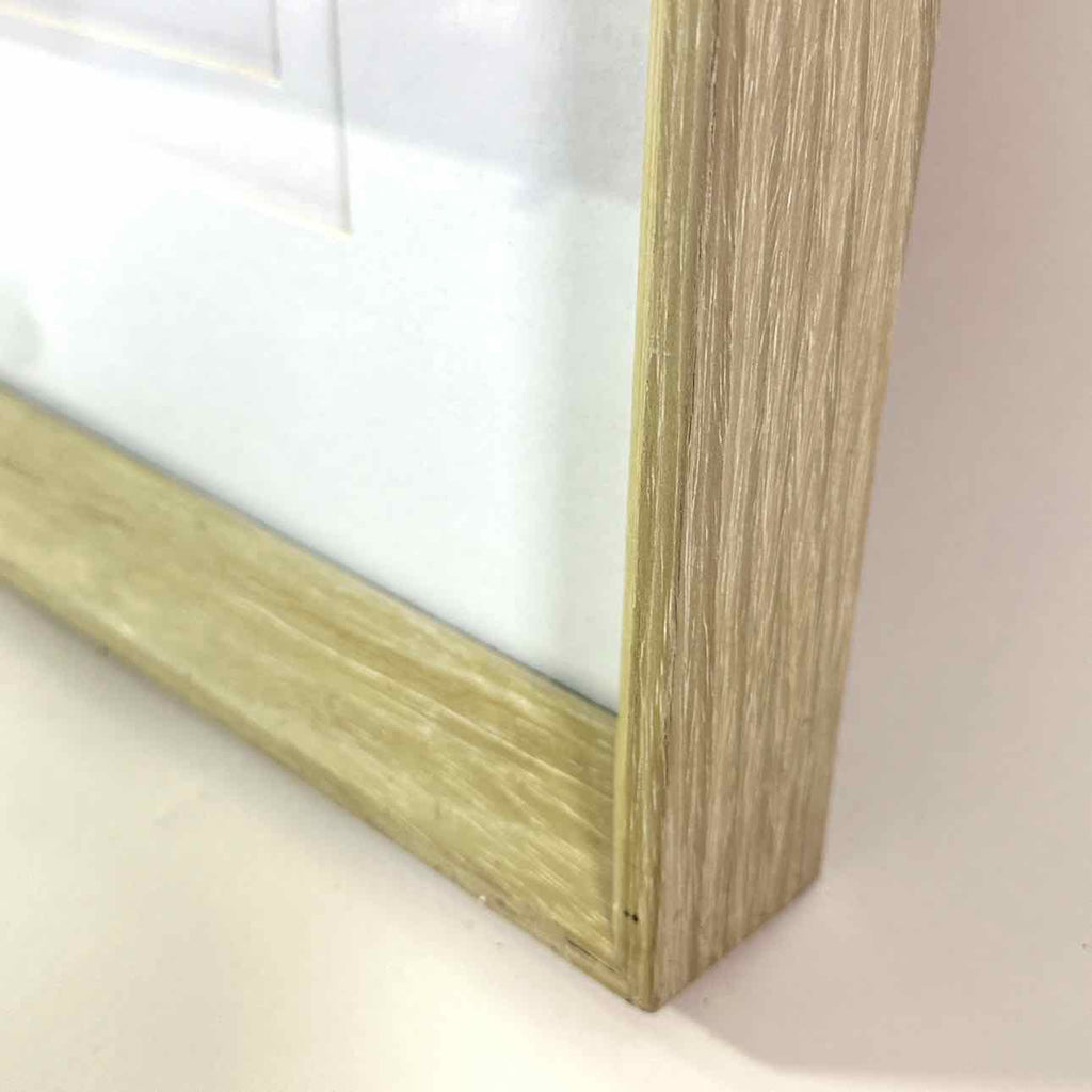 Abstract "Circlet Modern Prints" blue/tan circles, double white mats & light wood frame
