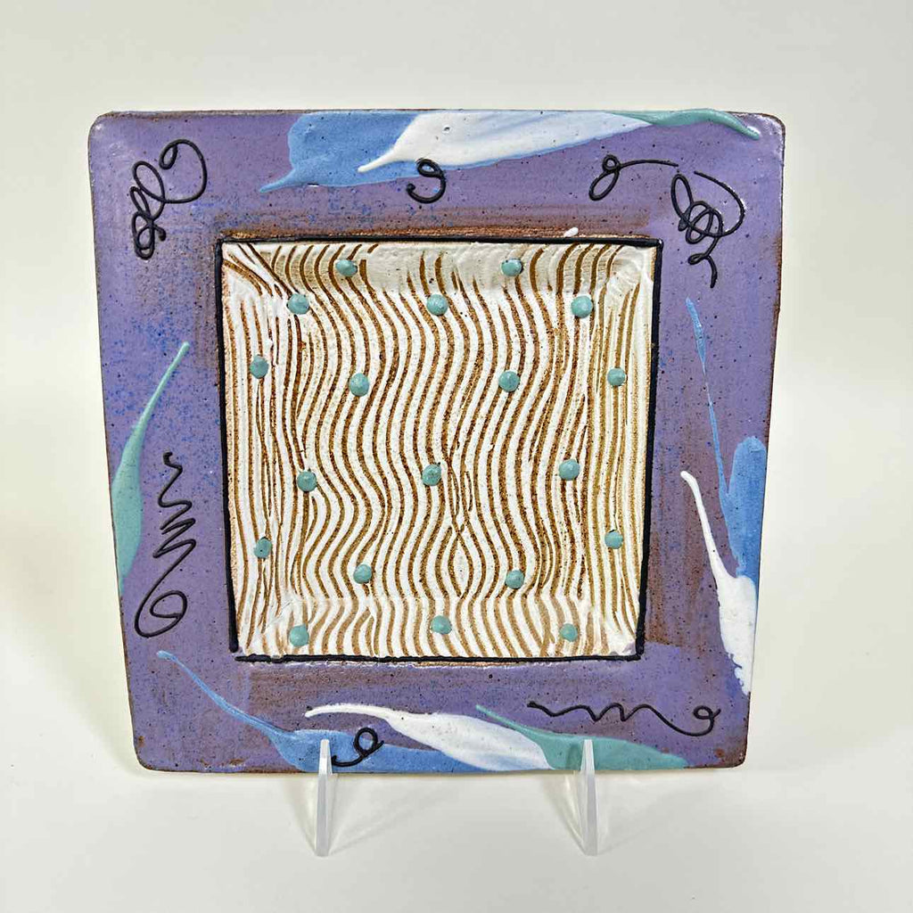 Hand crafted square purple, cream & blue square wall decor w/ textured pattern